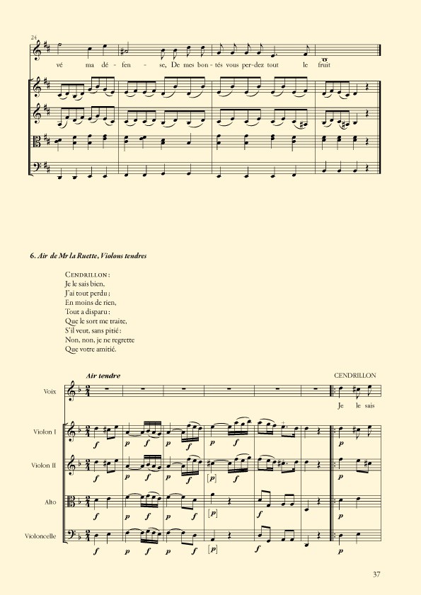 Soulignons que c'est devant la grande qualité du livret de Louis Anseaume et des airs de Jean-Louis Laruette que nous avons entrepris ce travail : Cendrillon nous dévoile un compositeur sensible qui s'exprime en demi-teintes et nous touche par ses mélodies tendres et délicates.