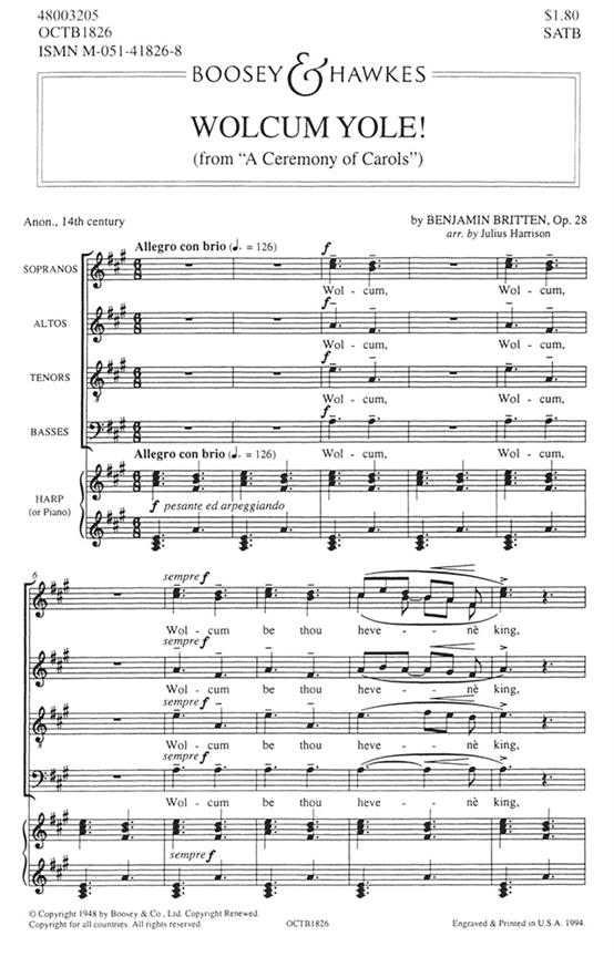 Ceremony Of Carols Op. 28 BRITTEN BENJAMIN