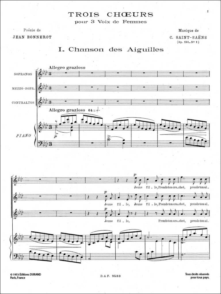 Chanson Aiguilles 3 Voix/Piano SAINT-SAENS CAMILLE