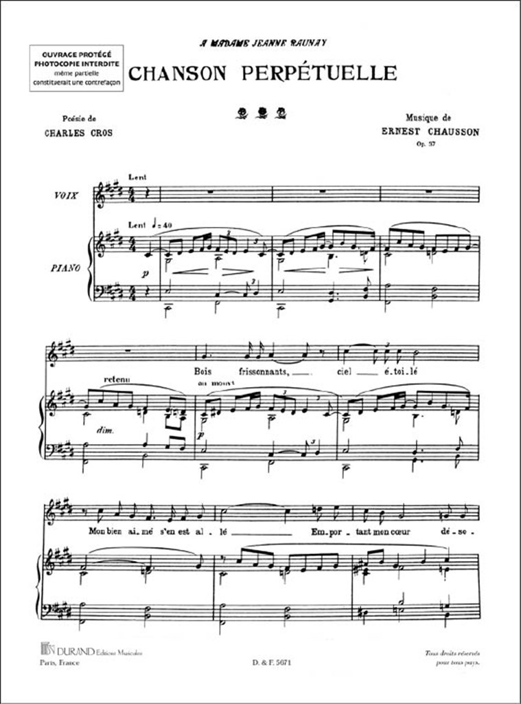 Chanson Perpetuelle, Pour Soprano Et Orchestre CHAUSSON ERNEST