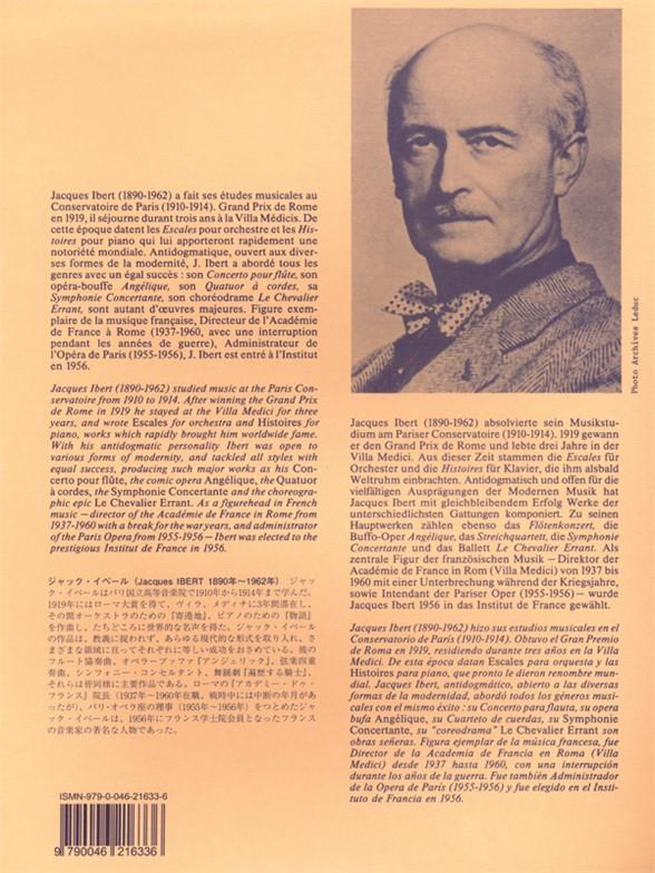 Jacques Ibert (1890-1962) studied at the Paris Conservatoire before embarking upon a successful composing career. The film Don Quichotte increased his popularity when he composed the musical score in 1933. Controversially, the producers of Don Quichotte asked five composers separately to compose songs for the film. Each composer thought only he had been approached, and when Ibert 's music was eventually chosen for the film, it caused him some embarrassment as Maurice Ravel, who had also been approached, was a close friend of his. Chanson de la Mort comes toward the end of the film, when the main character, Don Quichotte, receives a great shock and dies. Addressing avariety of musical aspects and techniques, Ibert 's Chanson de la Mort is a challenging yet evocative addition to the Bass repertoire.