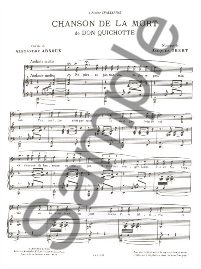 Chansons De Don Quichotte N04:Chanson De La Mort Chant Et Piano IBERT JACQUES
