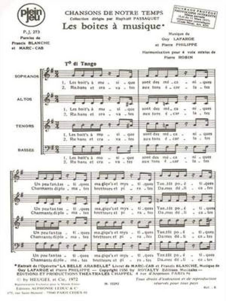 Chansons De Notre Temps/Pj273 Les Boites A Musique/4 Voix Mixtes LAFARGE GUY / PHILIPPE