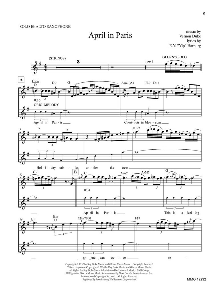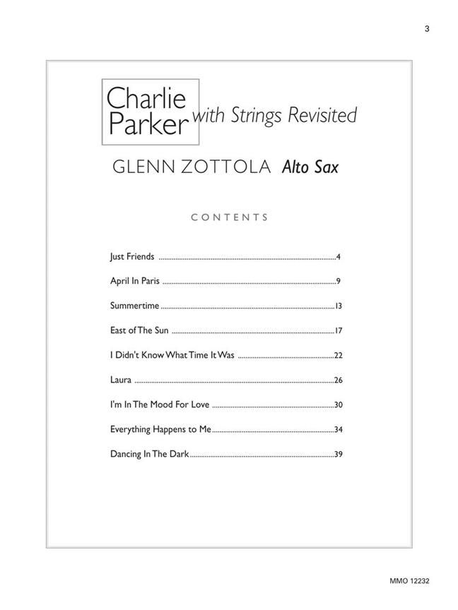 Les transcriptions originales des sessions Mercury de 1949 et 1950 avec Charlie Parker sont présentées dans cette collection, avec des parties solos imprimées et des enregistrements audio contenant des versions complètes et accompagnées afin que vous puissiez prendre la tête avec le groupe. Quelle façon fantastique d’étudier la musique de Parker ! Parmi ses chansons : April in Paris · À l’est du Soleil · Tout m’arrive · Je suis d’humeur à aimer · Je ne savais pas quelle heure il était · Juste amis · Laura · Danser dans l’obscurité · L’été. Avec Glenn Zottola, saxophone alto. L’audio est accessible en ligne via le code unique contenu dans le livre et peut être diffusé en streaming ou téléchargé. Les fichiers audio incluent PLAYBACK+, un lecteur audio multifonction qui permet de ralentir le son sans changer de hauteur, de régler des points de boucle, de changer les touches et de faire un panoramique à gauche ou à droite.