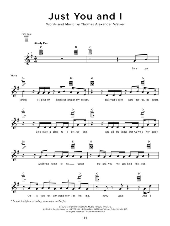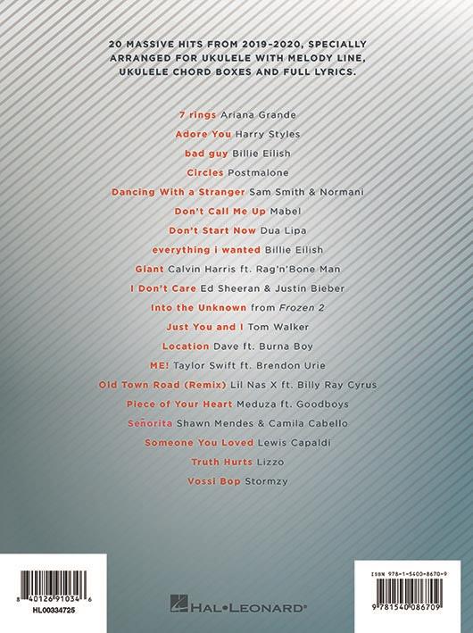 20 massive hits from 2019-2020, specially arranged for ukulele with melody line, ukulele chord boxes and full lyrics.