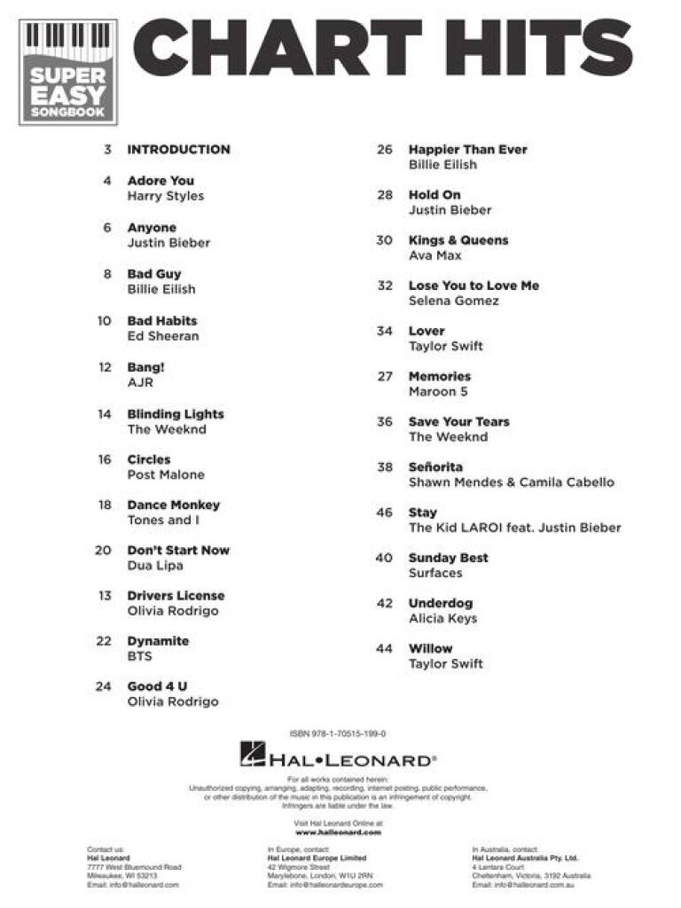 Chart Hits – Super Easy Piano