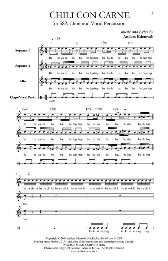 Chili Con Carne SSA Chorus A Cappella EDENROTH ANDERS