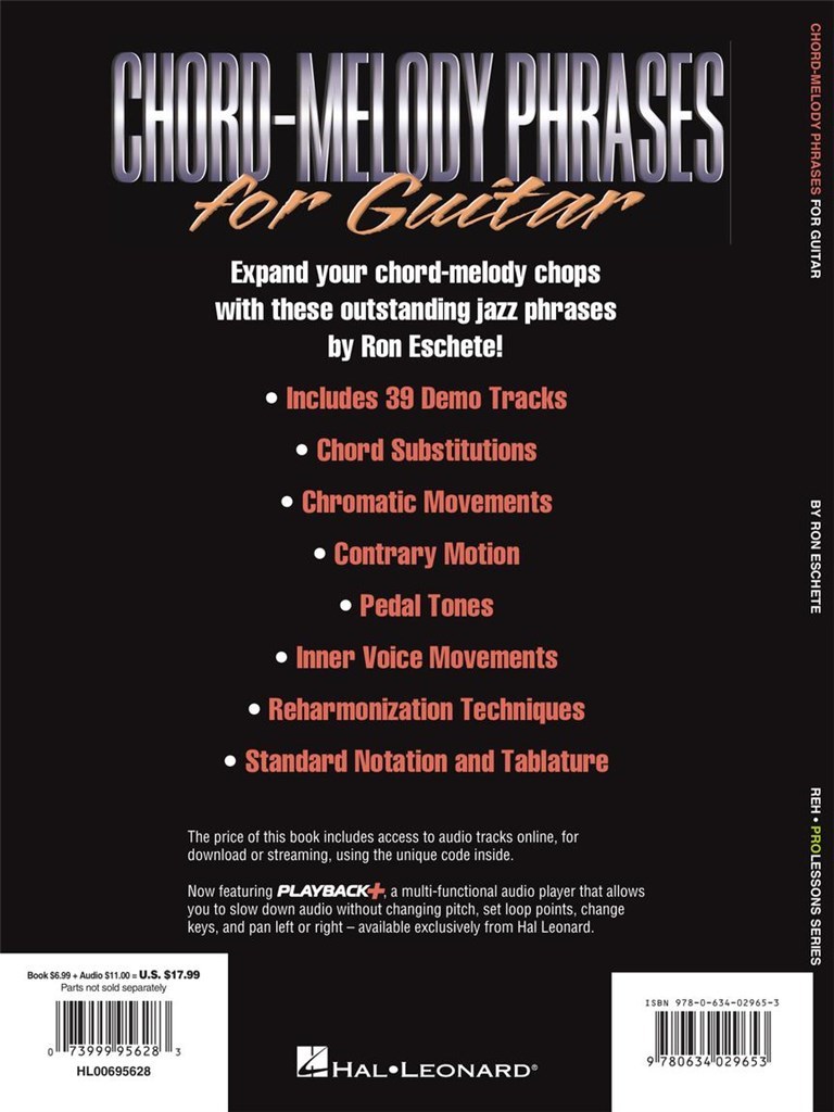 Ron Eschete. REH livre Audio/Pack. Développez vos côtelettes de corde-mélodie avec ces phrases jazz exceptionnelles. Explorez les substitutions de corde, mouvements chromatiques, motion contraire, tons pédales, voix intérieure, reharmonisation et plus encore. Disposées en tablature guitare et notation standard, avec CD de démonstration.