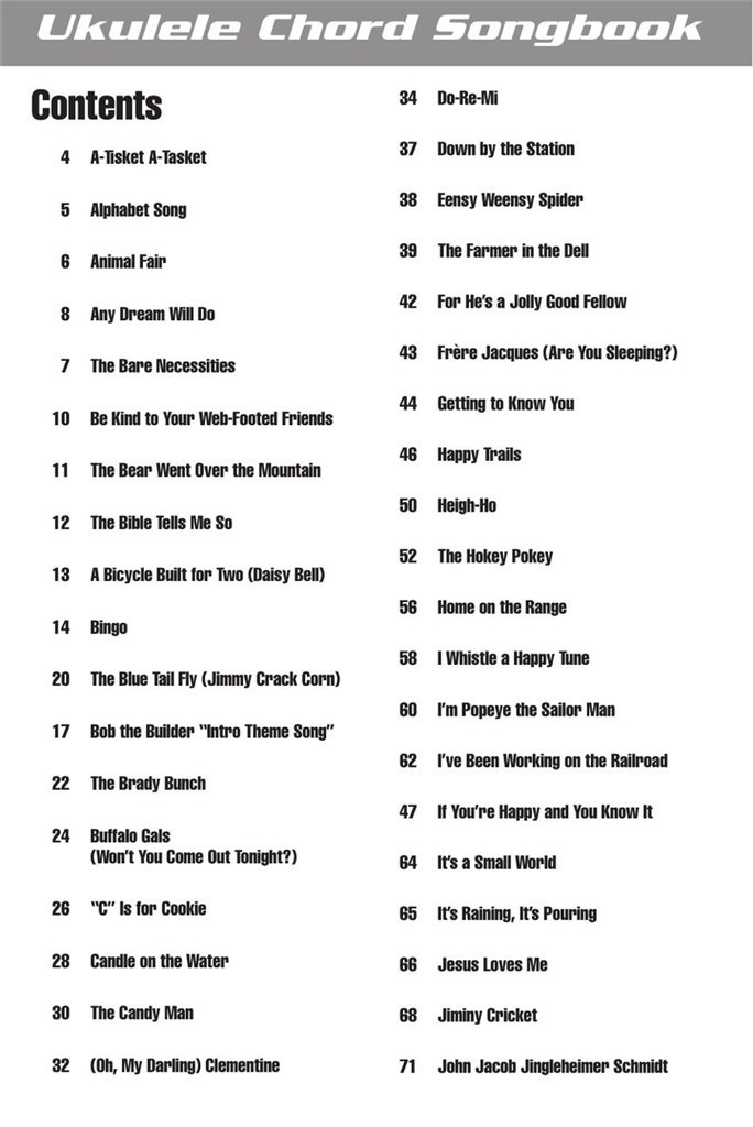 Cette série comporte pratiques 6 "x 9" livres avec les paroles complètes et symboles d'accord ci-dessus les paroles de dizaines de grandes chansons. Chaque morceau comprend aussi les grilles d'accords en haut de chaque page et les premières notes de la mélodie facile à consulter. Ces livres sont parfaits pour les personnes qui ne lisent pas la musique mais qui veulent accords Jouez et chantez, et sont également idéal pour les plus avancés, joueurs de ukulélé musique-lecture qui ne se sentent pas comme patauger dans la note pour note notation.