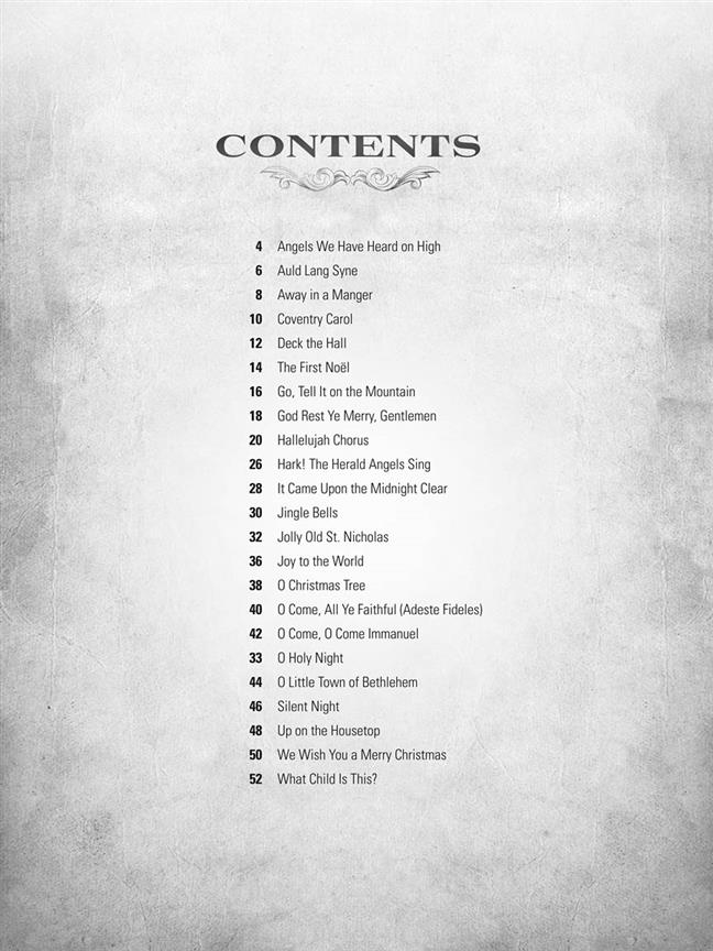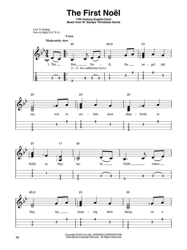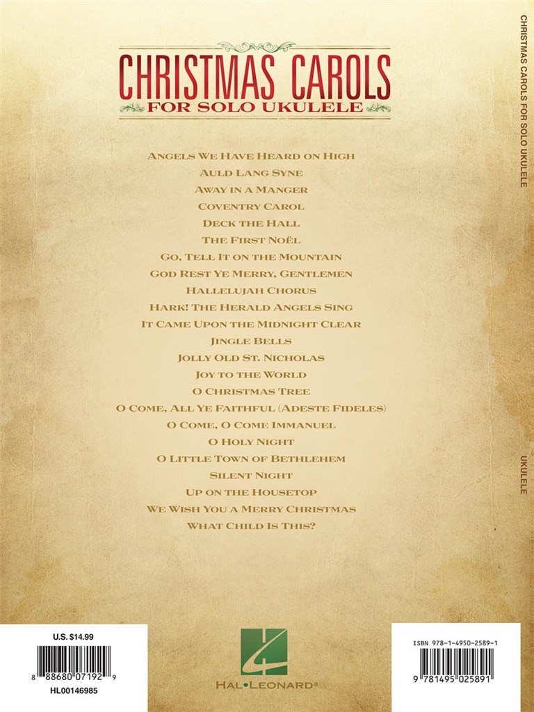 23 favoris des fêtes arrangés dans un style accord-mélodie pour ukulélé ténor en notation standard et tablature. Comprend : Partie dans une crèche - Décorez la salle - Allez, raconte-la sur la montagne - Chœur d’Alléluia - Il est venu à minuit clair - Clochettes - Joie au monde - Ô Viens, ô Viens Emmanuel - Ô petite ville de Bethléem - Nuit de silence - Nous te souhaitons un joyeux Noël - et bien plus encore.