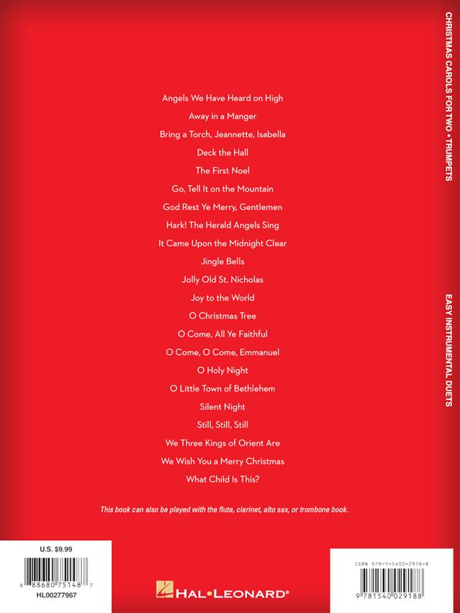 22 Christmas favorites for two instrumentalists are featured in this collection. Songs include: Angels We Have Heard on High · Away in a Manger · Deck the Hall · Jingle Bells · Joy to the World · O Holy Night · Silent Night · We Wish You a Merry Christmas · and more. This book can also be played with the flute, clarinet, alto sax, or trombone book. 22 Christmas favorites for two instrumentalists are featured in this collection. This book can also be played with the flute, clarinet, alto sax, or trombone book.