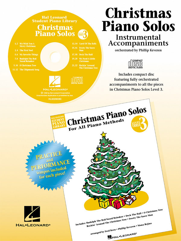 This compact disc correlates directly to the pieces in Christmas Piano Solos Level 3. All track numbers for use with the compact disc are clearly indicated in the book, and are listed on the actual CD as well. These fully-orchestrated accompaniments by Hal Leonard Student Piano Library method author Phillip Keveren are a delightful way to enhance students' lessons, and are a sure way to guarantee practice success.