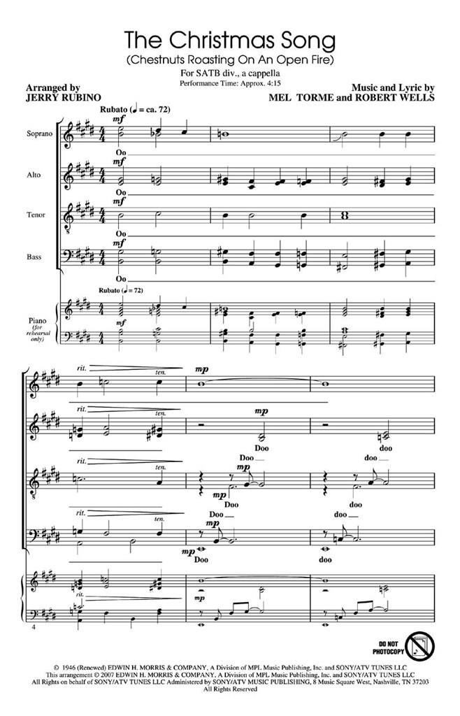 Christmas Song, The. SATB Divisi Unacc. TORME MEL / WELLS ROBERT