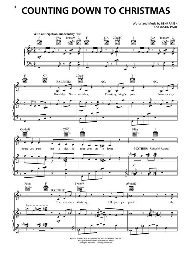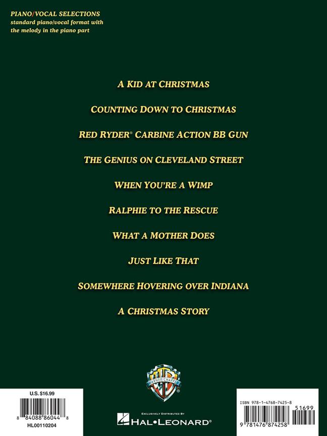 Fabulous music and delightfully funny - and touching - lyrics make this folio a must-have for any fan of this classic holiday film, or of musicals in general. Opening on Broadway this holiday season, A Christmas Story has already garnered great acclaim in regional and touring productions. Contains 10 songs: A Christmas Story - Counting Down to Christmas - The Genius on Cleveland Street - Just like That - A Kid at Christmas - Ralphie to the Rescue - Red Ryder Carbine Action BB Gun - Somewhere Hovering over Indiana - What a Mother Does - When You're a Wimp.