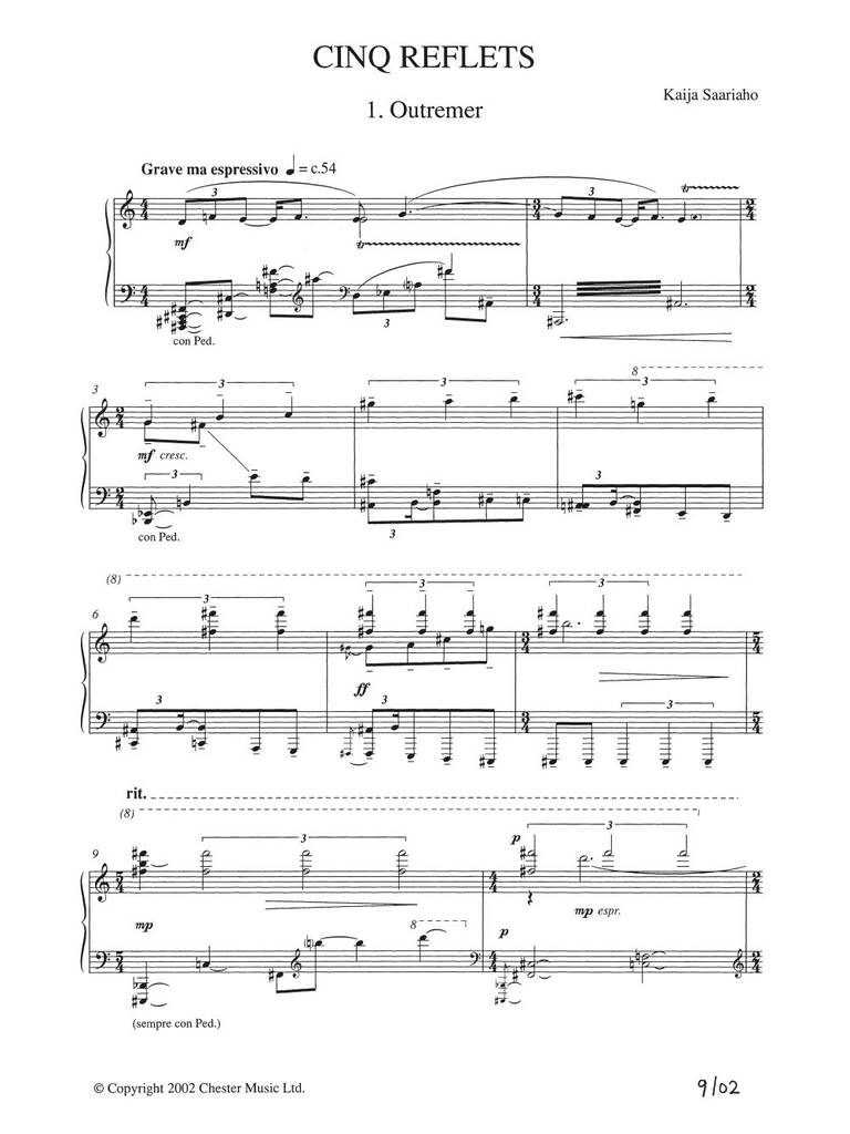 Cinq Reflets (Vocal Score) SAARIAHO KAIJA