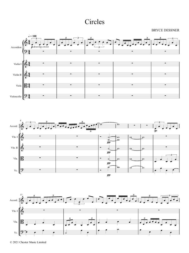Dessner’s Circles is a 5 minute work for bandoneon and string quartet. Commissioned for Julien Labro and Takacs String Quartet by Music Accord, Inc., the track opens the quartet’s 2024 album and utilises hypnotic rhythmic motifs to masterfully cycle through timbres and textures.