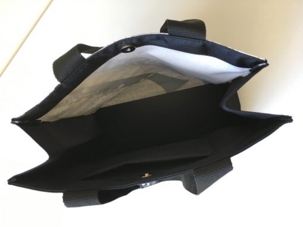 33 x 33 x 13 cm - nylon and waterproof, very resistant.Magnet closure on top and 1 pocket inside