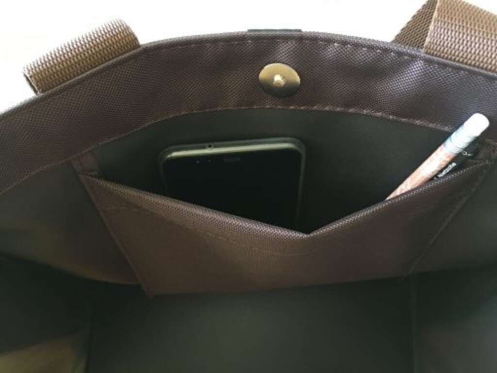 33 x 33 x 13 cm - nylon and waterproof, very resistant.Magnet closure on top and 1 pocket inside