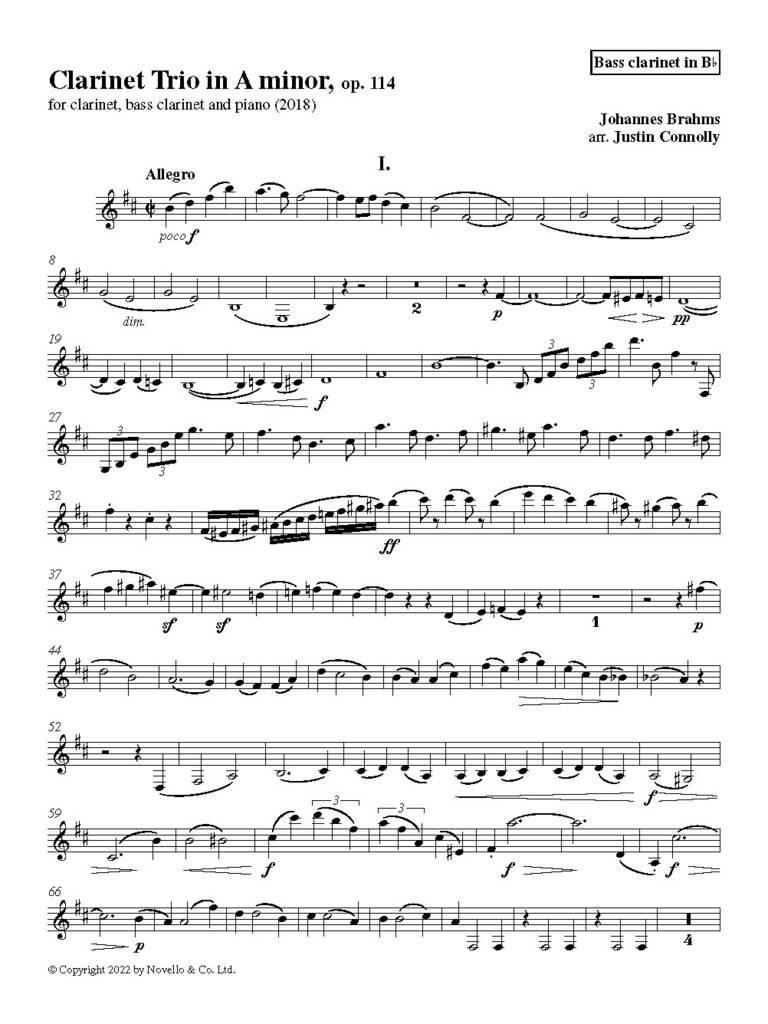 This bass clarinet part for Brahms' Clarinet Trio replaces the original cello part and is compatible with any edition of the work.