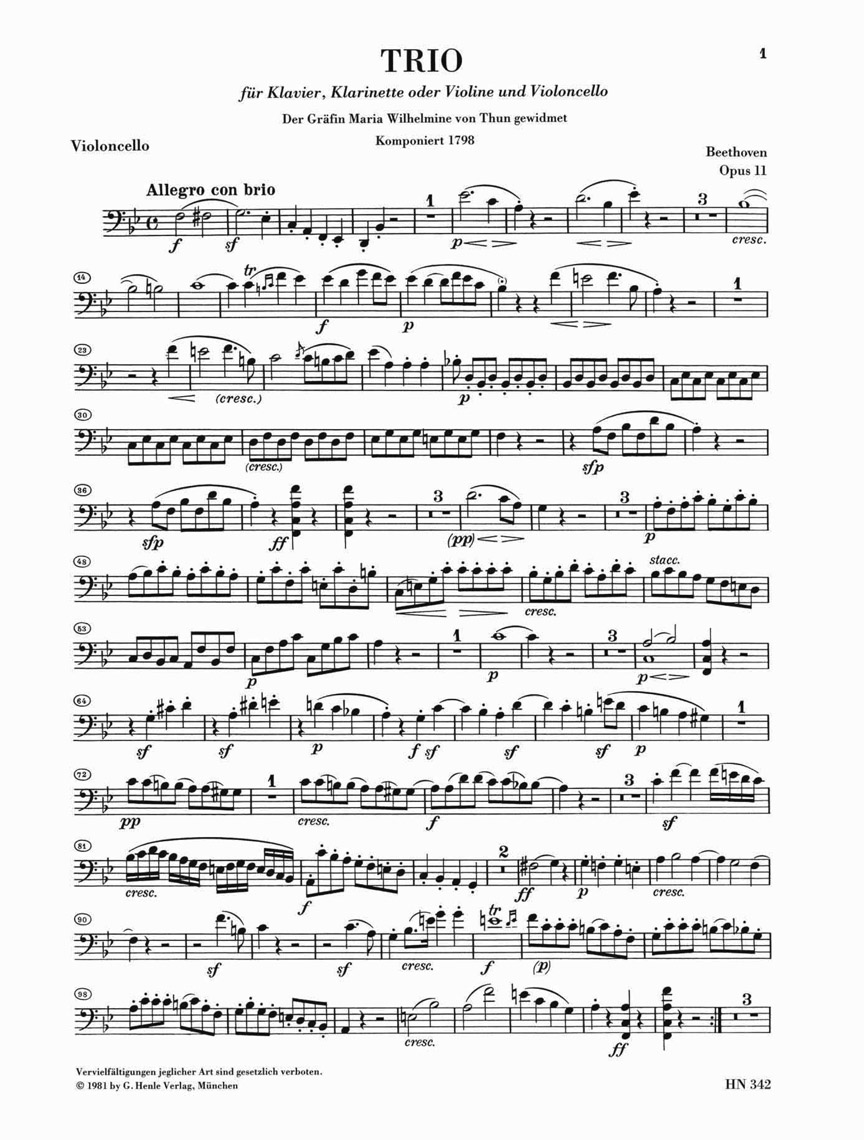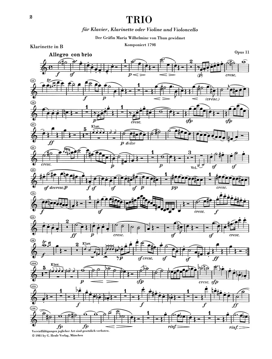 Clarinet Trio B flat major op. 11 for Piano, Clarinet (or Violin) and Violoncello