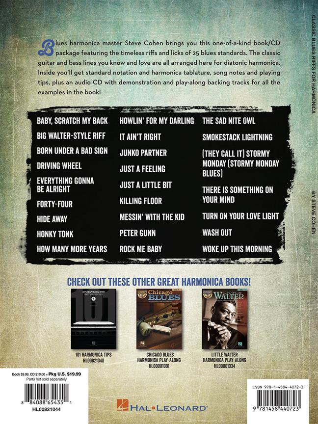 Harmonica Blues maître, Steve Cohen, vous apporte ce pack livre one-of-a-kind / CD avec des riffs et licks de 25 standards de blues intemporel.