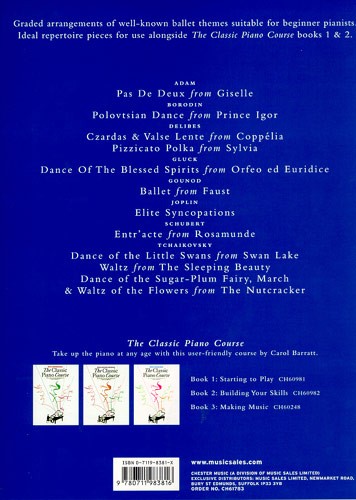 Des arrangements gradués de célèbres thèmes de ballets par Carol Barrat. Convient aux pianistes débutants. Ce sont des morceaux idéaux pour un répertoire, à utiliser avec 'The Classic Piano Course'. Tous vos thèmes favoris de ballets classiques, dont les musiques de Delibes, Gluck et Tchaikovsky