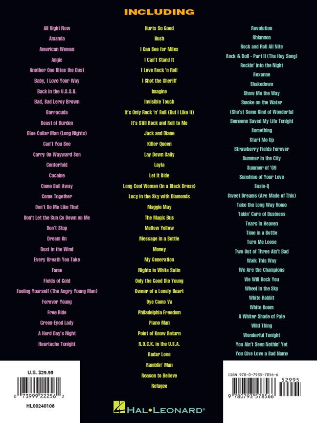 Plus de 250 classiques du rock transcrits en lignes mélodique, paroles complètes et accords tous instruments