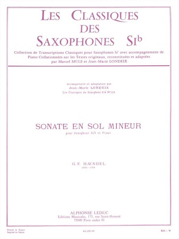 Classique Saxophone Sib N0114 Sonate En Sol Mineur HAENDEL GEORG FRIEDRICH / LONDEIX