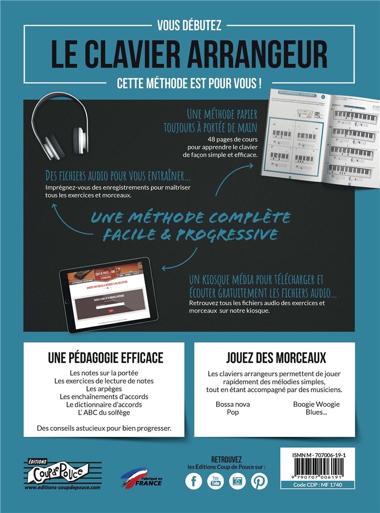 Méthode de clavier pour débutant spécialement conçue pour les claviers arrangeurs. Chaque morceau présente tous les réglages à effectuer sur l'arrangeur (sélection du style, réglage du tempo, accompagnement automatique, etc.). Cette méthode peut êtrement utilisée avec un clavier traditionnel ou un piano. Inclus ABC du solfège et dictionnaire d'accord