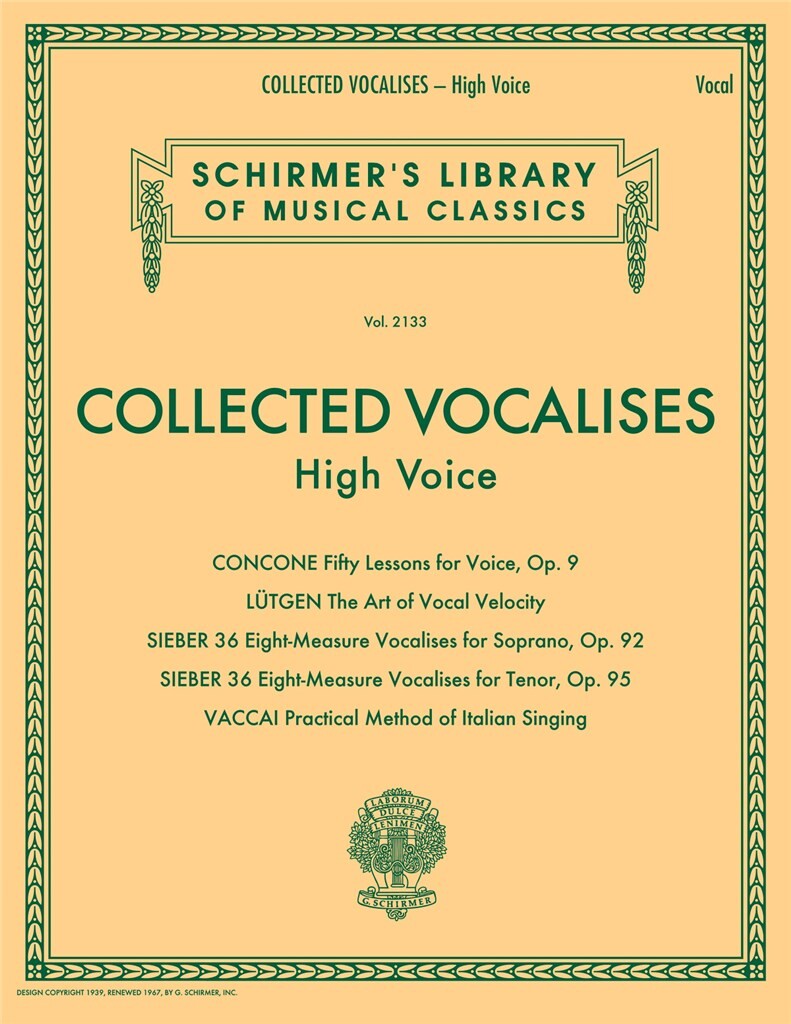 With over 150 vocalises, this collection will be very useful for many teachers and students of singing. Includes CONCONE: Fifty Lessons for Voice, Op. 9 - LÜTGEN: The Art of Vocal Velocity - SIEBER: 36 Eight-Measure Vocalises for Soprano, Op. 92 - SIEBER: 36 Eight-Measure Vocalises for Tenor, Op. 95 - VACCAI: Practical Method of Italian Singing