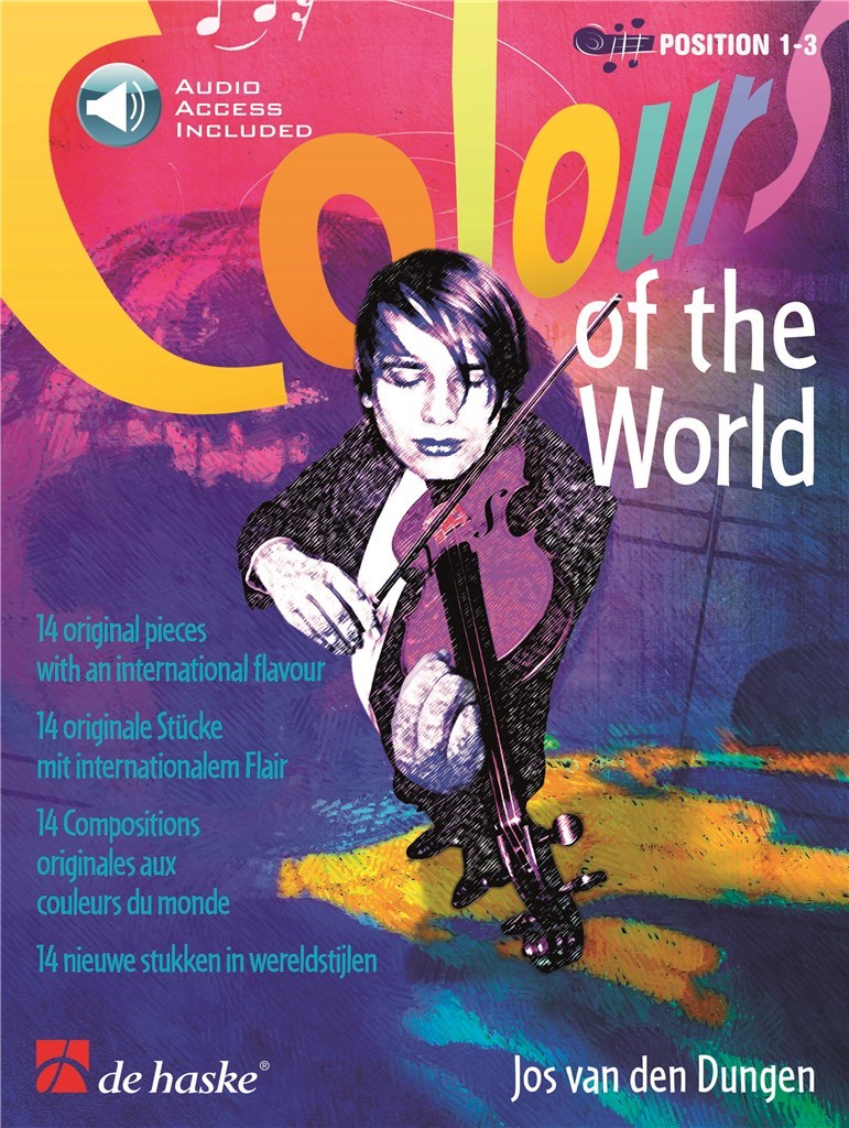 Colours of the World (« Couleurs du monde ») est le recueil idéal pour tout violoniste ayant une certaine expérience du jeu en première, deuxième et troisième positions, et qui souhaite partir à la découverte de styles et d’horizons musicaux nouveaux. Jos van den Dungen s’est inspiré de musiques en provenance du monde entier (Irlande, Hongrie, États-Unis, Cuba, Argentine, Maroc, entre autres) et de différentes époques. Laissez-vous séduire par les superbes pistes d'accompagnement disponibles en ligne au format MP3. Du rock à la house en passant par les sonorités chaleureuses de la musique des Balkans et tex-mex, ce recueil vous propose d’excellents moments musicaux.