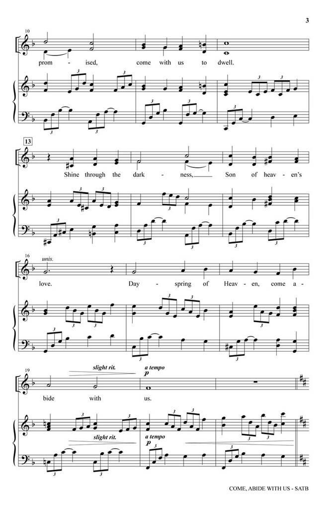 Utilisations : Avent, Noël Écriture : Exode 33:14-15, Deutéronome 31:6, Jean 15:4 Les échos d’un classique romantique pour piano inaugurent cette adaptation d’hymne avec une émotion tendre et un style élégant. La pièce évolue de manière organique, permettant aux metteurs en scène de se concentrer sur le potentiel expressif de chaque phrase. Une écriture partielle de qualité encourage le processus d’apprentissage, et le message de la présence et du réconfort de Dieu est intemporel. Simplement magnifique !