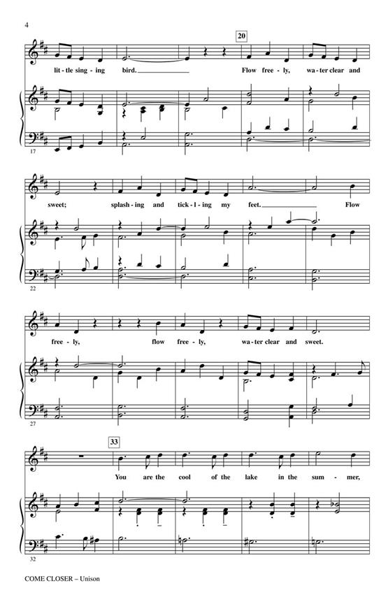 Cette charmante œuvre unisson exprime un émerveillement enfantin et un étonnement devant les choses simples de la nature : un oiseau chantant, un ruisseau bouillonnant, le soleil chaud et les arbres qui bourgeonnent. Très musicales et chantantes, les chorales de trénois apprécieront l’imagerie et la musicalité. Durée : environ 3h00.