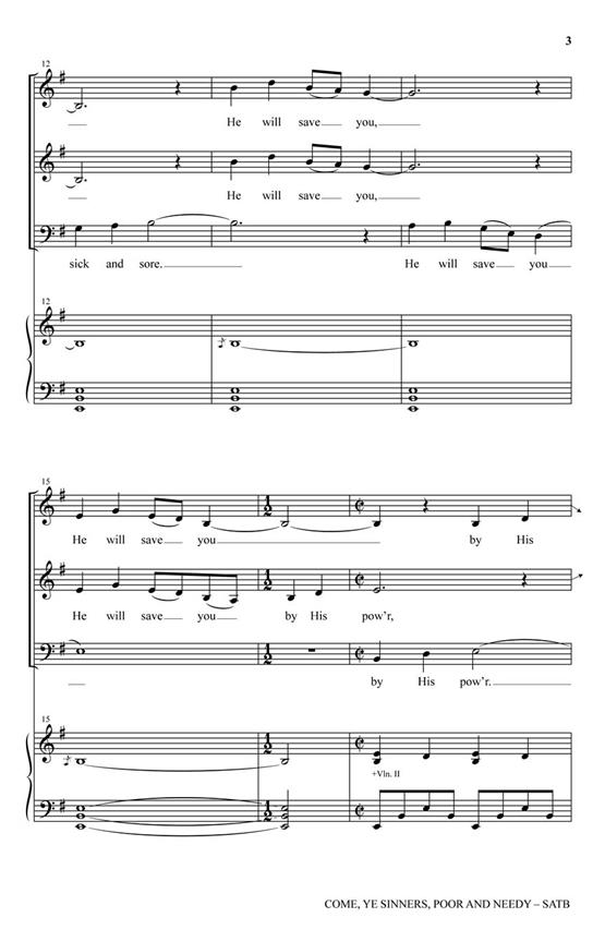 L’élégance rustique décrit le mieux cette disposition innovante d’un hymne américain ancien, bien établi. Le message et la musique se joignent à cet hymne, qui regorge de moments splendides, incluant quelques effets vocaux spéciaux et un vocabulaire harmonique ouvert qui reflète l’idiome folklorique de l’œuvre. Les thèmes de la repentance et de la grâce sont efficaces dans de nombreux contextes de culte, et cette offrande singulière sera assurément la préférée de vos chanteurs ! Partition et parties (vn 1-2, vc) disponibles en téléchargement numérique.