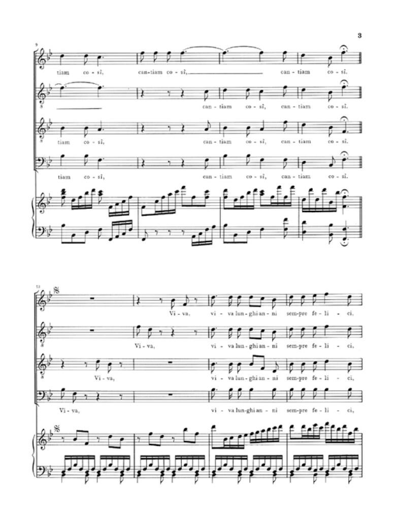 On a de la peine à y croire : les cinq pièces rassemblées ici étaient jusqu’à peu inaccessibles. Il existe donc encore des oeuvres vocales de Beethoven à découvrir ! Ces cinq brèves pièces à plusieurs voix sont idéalement à exécuter par des solistes accompagnés d’une partie de piano obligée. Il s’agit de trois chansons (N°1-3) et de deux arrangements originaux de compositions pour choeur très connues, le « Bundeslied » op. 122 et le « Opferlied » op. 121b.
