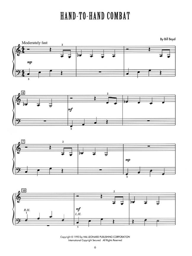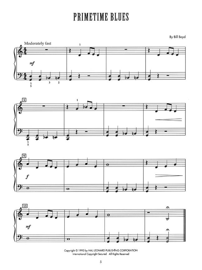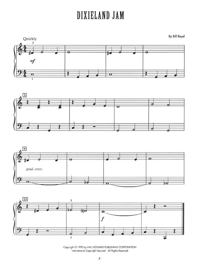 Une deuxième collection de grands morceaux de jazz original écrit dans un facile à vivre, un style enjoué. Facile à apprendre les solos dans les positions 5 doigts ce changement et revenir au sein d'une structure de blues de base. Utilise croches, balançoire mètres huitièmes, simple et 6 / 8. Court, le jazz authentique style facile pour l'étudiant de fin de primaire. Un véritable coup de coeur pour tous les âges. 11 Solos: Dixieland Jam - Hand-to-Hand Combat - Major Song - Minor Song - Primetime Blues - A Rather Racous Rock - The Rock Exchange - Six Ate Beets - Soft Shoe Shuffle - Sweet Swing - Why Not?