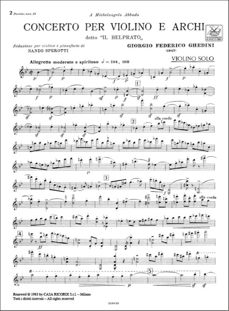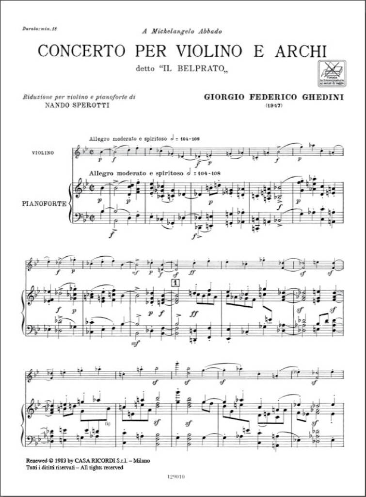 Conc. Per Vl. E Archi Detto ‘Il Belprato’ GHEDINI F.