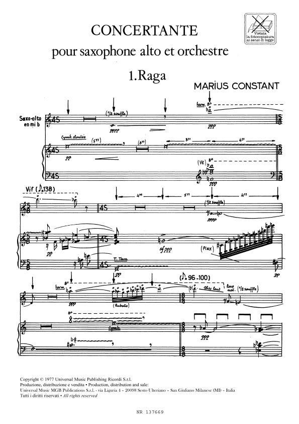 Concertante Pour Saxophone Alto Et Orchestre CONSTANT MARIUS