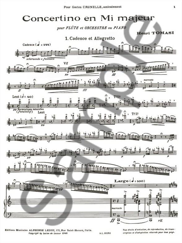 Concertino En Mi Majeur (Flûte TOMASI HENRI
