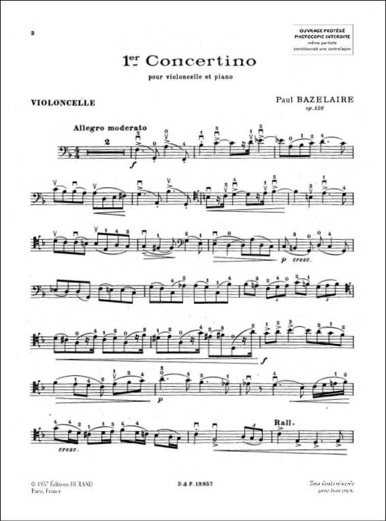 Concertino N 1 Vlc/Piano BAZELAIRE PAUL