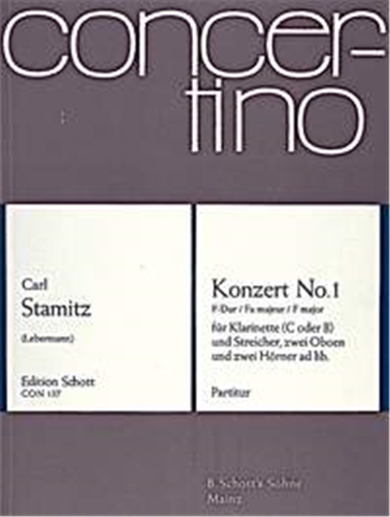 Concerto #1 F Major STAMITZ CARL Clarinette en Do ou Sib et Cordes 2 Hautbois et 2 Schott Music 20,60€