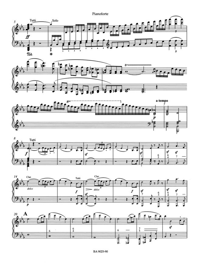 As with the Piano Concertos Nos. 1 to 4, the piano reduction appears with a separate solo part containing all the information needed by the soloist to conduct the ensemble from the piano.