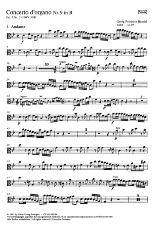 Concerto D’Organo Nr. 7 In B (Orgelkonzert Nr. 7 In B) HAENDEL GEORG FRIEDRICH
