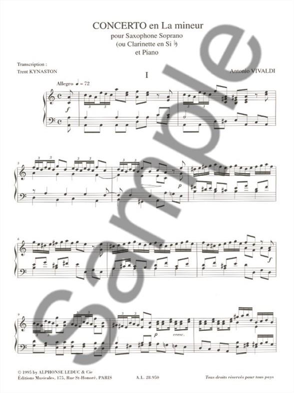 For soprano saxophone (or clarinet) and piano (originally for oboe, strings and harpsichord).