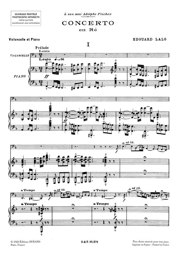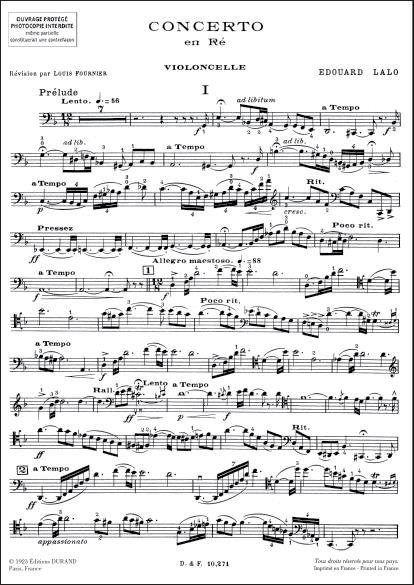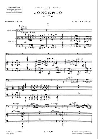 Concerto En Re Pour Cello Et Orchestre LALO EDOUARD
