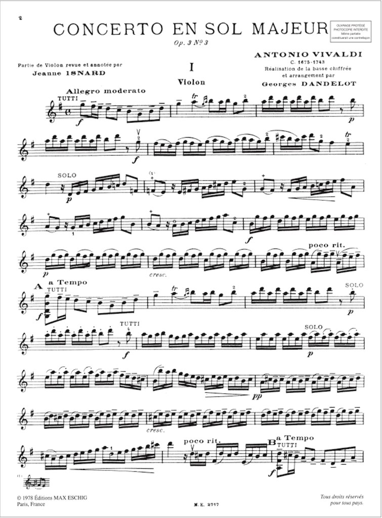 Concerto En Sol Majeur Pour Violon Et Piano Op. 3 N. 3 VIVALDI ANTONIO