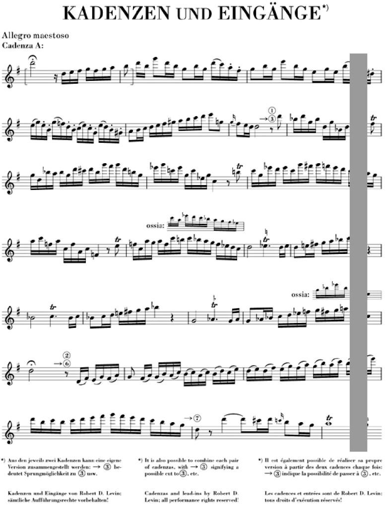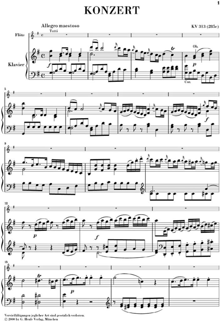L’édition de la partie flûte a été réalisée par l’un des flûtistes les plus renommés de notre époque : András Adorján. Les cadences et entrées ont été écrites par le connaisseur de Mozart, le musicologue et pianiste Robert D. Levin. Les cadences et entrées proposées se caractérisent par le fait que, grâce à un système de référence sophistiqué, le musicien peut toujours assembler de nouvelles cadences « propres » à partir du matériel proposé. Les propositions de Levin se rapprochent ainsi beaucoup du caractère improvisé des cadences et des entrées. La réduction pour piano a été écrite par le connaisseur de Mozart et spécialiste du basso continuo Siegfried Perenz. Il vise une écriture pianistique agréable, techniquement pas trop exigeante, qui se distingue clairement des réductions répandues pour piano orientées vers l’écriture orchestrale. Cela prend aussi en compte la situation pédagogique typique, où des phrases plus simples sont souvent requises.