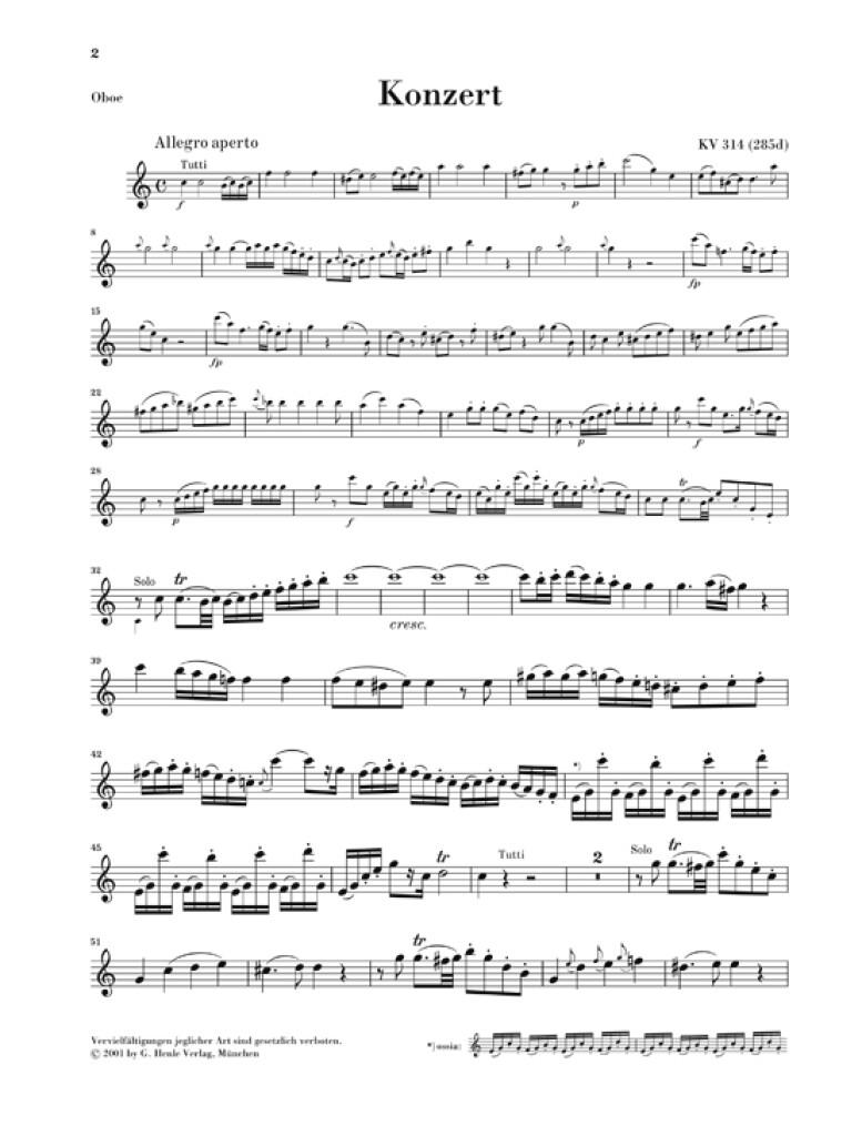 Concerto For Oboe And Orchestra C Major K. 314 MOZART WOLFGANG AMADEUS