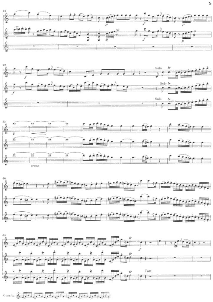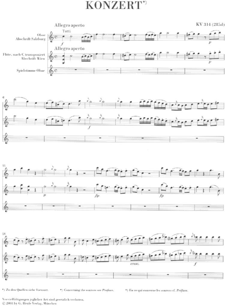 Cette édition Urtext de Henle est à la recherche de sa pareille en matière de fonctionnalité et de précision. La presse spécialisée «Rohrblatt» a déclaré, peu après sa parution (2004): «Un trait de génie éditorial . . . Chaque hautboïste qui se risque à ce concerto, doit confronter son interprétation à cette édition». Cet éloge honore avant tout l’éditeur, le célèbre hautboïste Ingo Goritzki. Son idée fut d’offrir, outre la partie séparée, un cahier présentant simultanément les deux sources de l’oeuvre – problématiques l’une et l’autre pour diverses raisons. Grâce au choix de l’agencement de la partition, l’interprète distingue du premier coup d’oeil toutes les divergences etpeut ainsi justifier ses propres choix d’interprétation. Des passages particulièrement problématiques et abondamment discutés ont été exhaustivement commentés par le professeur Goritzki. Le «trait de génie éditorial» vise tout autant le pianiste et expert mozartien Robert Levin, qui a composé pour ce concerto pour hautbois de Mozart de fantastiques cadences dans le style du maître: tout à fait dans l’esprit d’improvisation attendu pour toute cadence, l’interprète pourra précisément, à divers passages du texte, grâce à un simple système de renvois numériques vers d’autres endroits, bricoler ainsi sa «propre» cadence. Un mot enfin à propos de l’excellente réduction pour piano de cette édition. Elle est de la plume de Siegfried Petrenz, un profond connaisseur de Mozart et illustre spécialiste de la basse continue. Son ambition est celle d’une réduction sonnant bien, d’exécution relativement aisée et qui se distingue nettement de toutes celles qui s’en tiennent à la partition orchestrale. Voilà qui vient également au secours des conditions d’enseignement qui privent parfois le hautboïste d’un répétiteur professionnel.