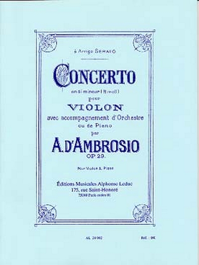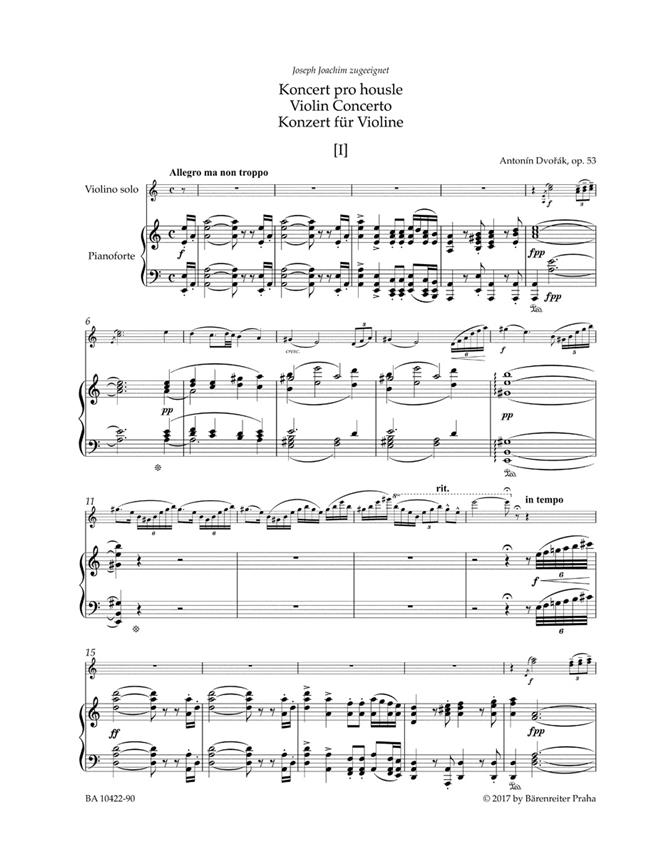 Concerto For Violin And Orchestra A Minor Op. 53 Piano Reduction DVORAK ANTONIN
